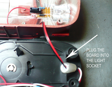 STEP 5NOTE: If you have a postwar locomotive with a bayonet bulb, you must either connect the bulb socket wires to the pigtails or locate a power source you can hook the LED board up to.